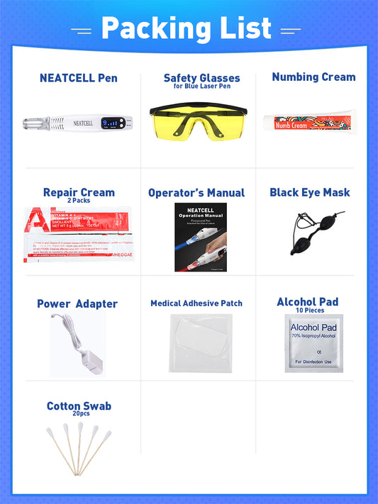 The Complete Home Tattoo and Pigment Removal Set: NEATCELL Plug-In Model Picosecond Laser Pen with Safety Glasses, Operator's Manual, Numbing Cream, Repair Cream, Cotton Swabs, and Alcohol Pads