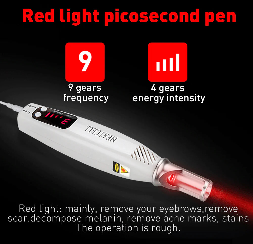 You must wait for the tattoo to heal before using the picosecond laser pen. Removal should be done once a month, and patience is required for the skin to recover.