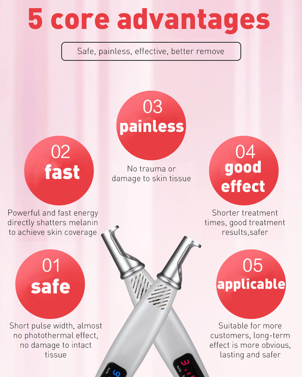 Because the size and depth of spots,moles,and tattoos vary,there is no fixed recommendation for which level to use in specific cases.please read User Manual carefully.
